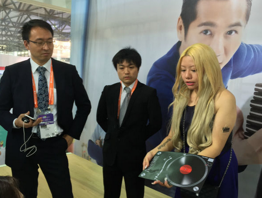 雷琇渂(右一)在介绍 ICPAPER DJ 控制器