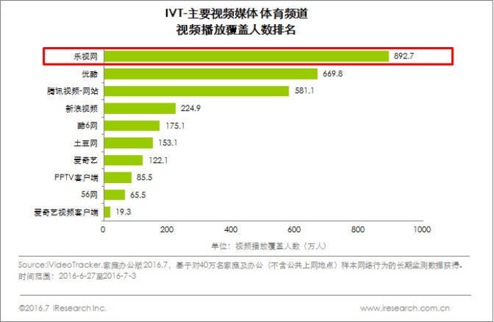 除了播放时长上的优势之外,乐视体育此次还在覆盖人数上成功超越优酷与腾讯,以892.7万领跑榜单。有效播放时长与覆盖人数的双线飘红也证明了乐视体育平台强大的用户入口效应与极高的用户黏性。