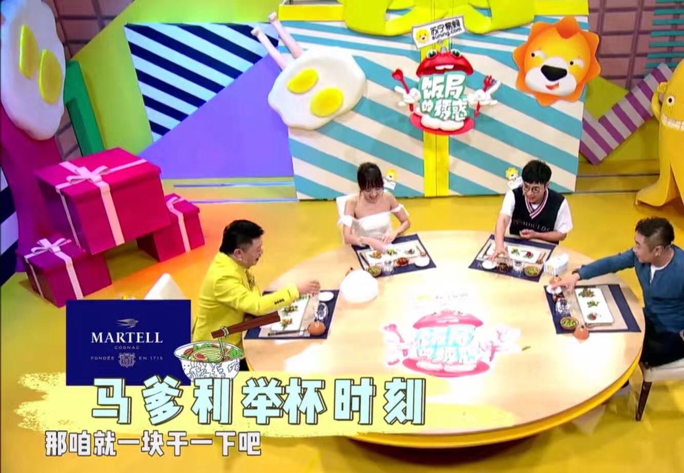 在经过与腾讯视频和斗鱼直播两大优势渠道商的商量后,米未决定即从《饭局的诱惑》节目本身的内容场景出发,将影响节目情节的各个应用场景做细小的细分,分析归类出最为适合品牌商的场景,准确进行“产品应用化植入”。例如在饭局这一吃饭场景中,米未就接入了马爹利这一酒品牌。