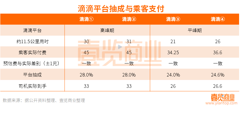 从抽成看,滴滴抽成24%-28%(抽成30%以内合规),在一众平台中抽成最高,但高抽成伴随高客单价,最终滴滴司机们到手还是最多。以4趟高峰期路线一致、用时相近的行程为例,滴滴①、滴滴②、妥妥、享道四位司机分别到手33元、33元、29元、32元,扣成之后,滴滴司机实际到手最多、享道司机到手最少。在平峰期下,滴滴司机们到手一样稳定在26元/单,聚合在高德打车上的T3、曹操、携华、添猫司机们到手则为23-28元;由此可见,跑同一距离的行程,滴滴司机收入稳定且更高。