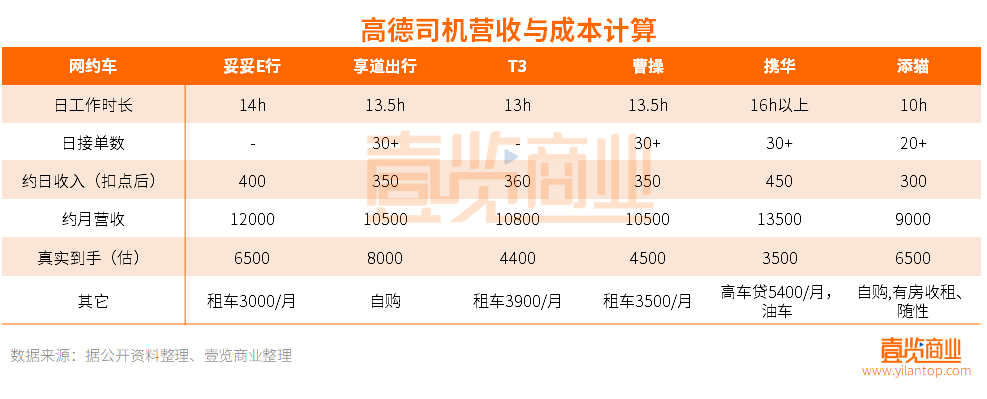 据了解,高德聚合下的各大打车平台,抽成差异巨大,但抽成方式主要分两种:一种是如妥妥E行、享道、T3、曹操等大平台们,抽成在16%-25%之间,因平台之间的议价能力不同抽成不同;另一种是像携华、添猫、安安用车等等中小平台们,每单抽成约16%且每单加1.6元信息费。