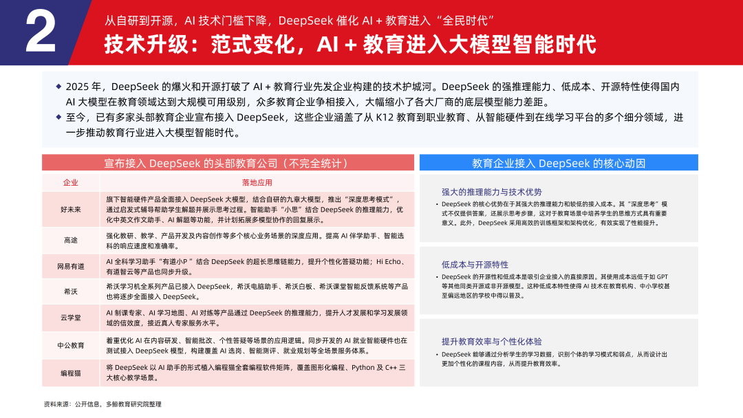 2.5 从自研到开源,AI 技术门槛下降,DeepSeek 催化 AI + 教育进入「全民时代」