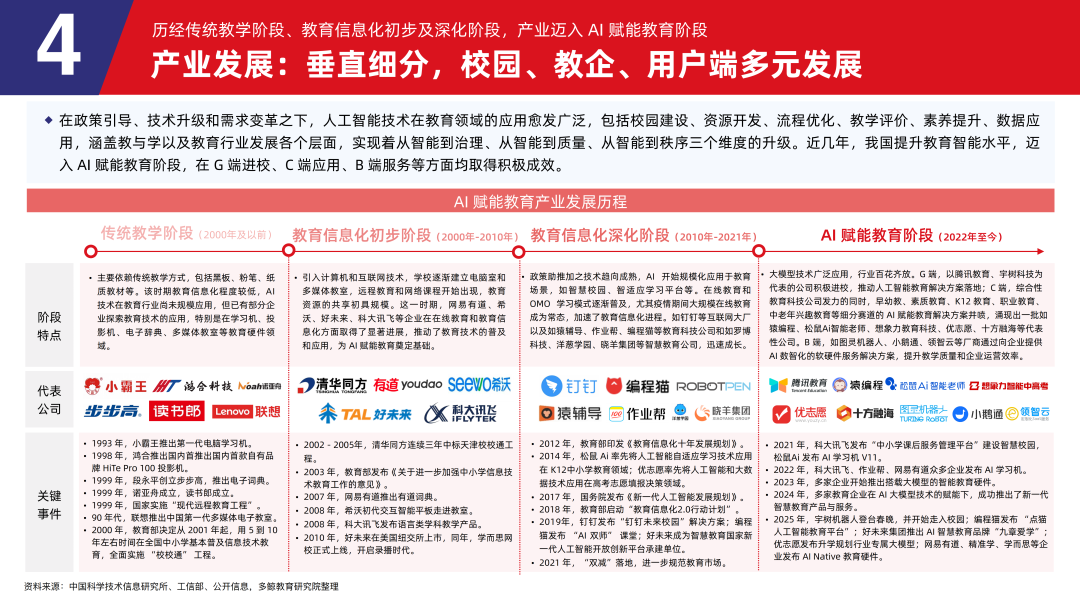 4.1 历经传统教学阶段、教育信息化初步及深化阶段,产业迈入 AI 赋能教育阶段