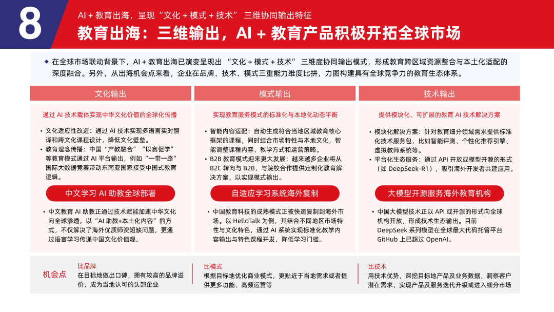 8.3 AI + 教育出海,呈现「文化 + 模式 + 技术」 三维协同输出特征