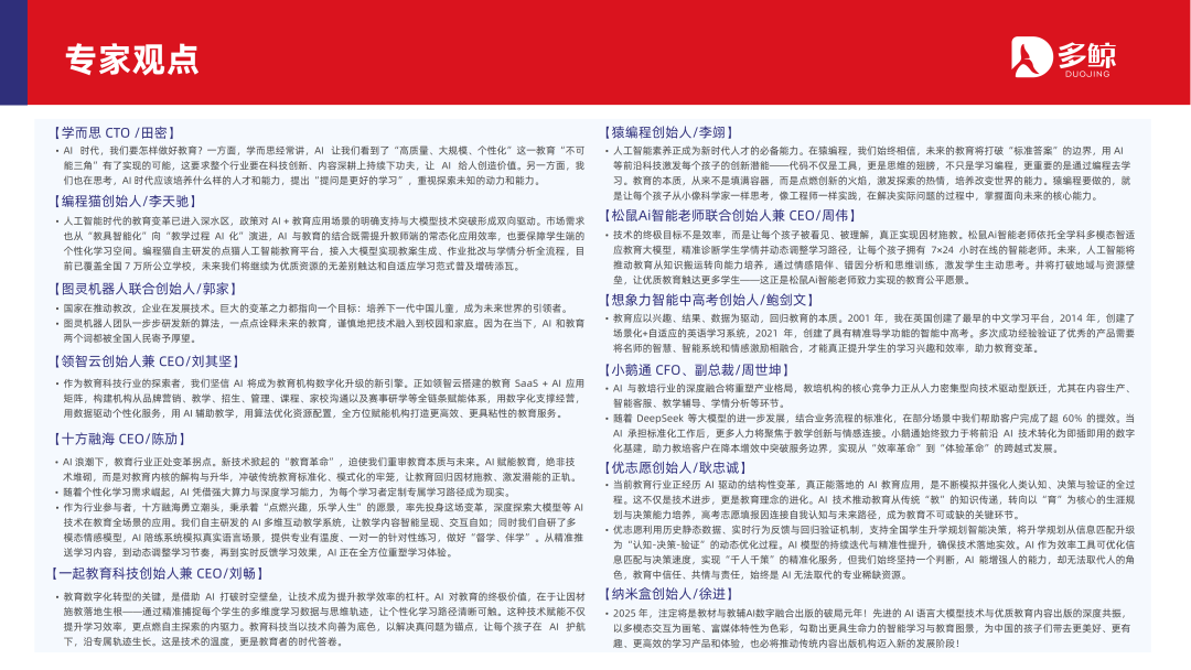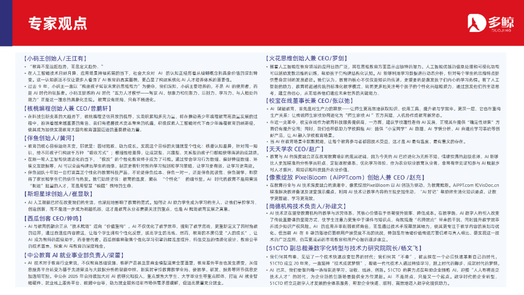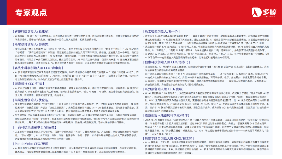 2025 年 6 月,面对行业全新阶段,多鲸教育研究院出品《2025 AI 赋能教育行业发展趋势报告》,深度解析政策、市场、技术与行业格局,聚焦十大核心趋势,为教育行业提供全面的方向指引和战略洞察,助力机构抢占先机、开拓未来。