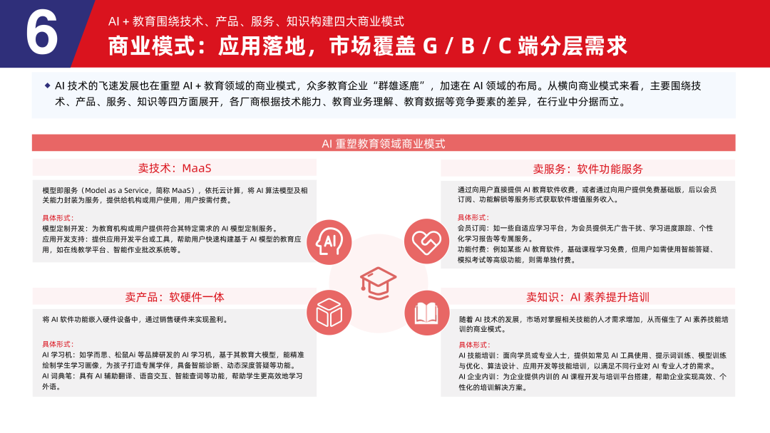 6.2 AI + 教育围绕技术、产品、服务、知识构建四大商业模式