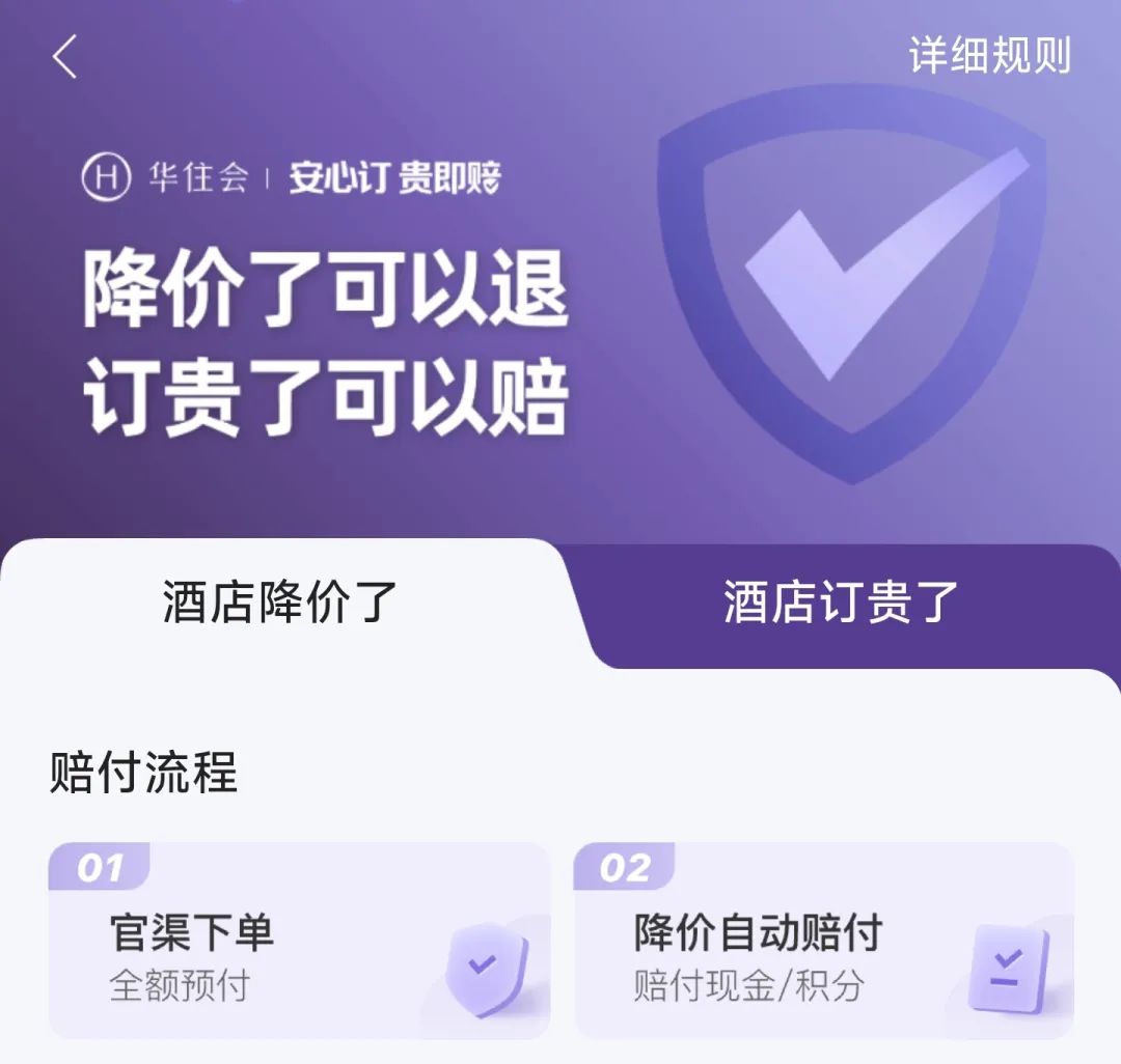 最近,华住会就携旗下汉庭、全季、花间堂等30多个酒店品牌推出了“贵即赔”服务。简单来说就是酒店价格订贵了,华住会直接双倍积分赔付差价(铂金会员3倍),并且支持与指定合作的主流预订平台比价,保证“订贵了可以赔、降价了可以退”,最高还可以领300元补贴。