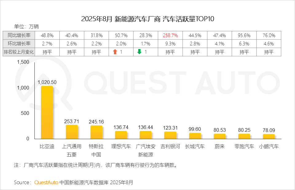 1、新能源厂商活跃量TOP榜