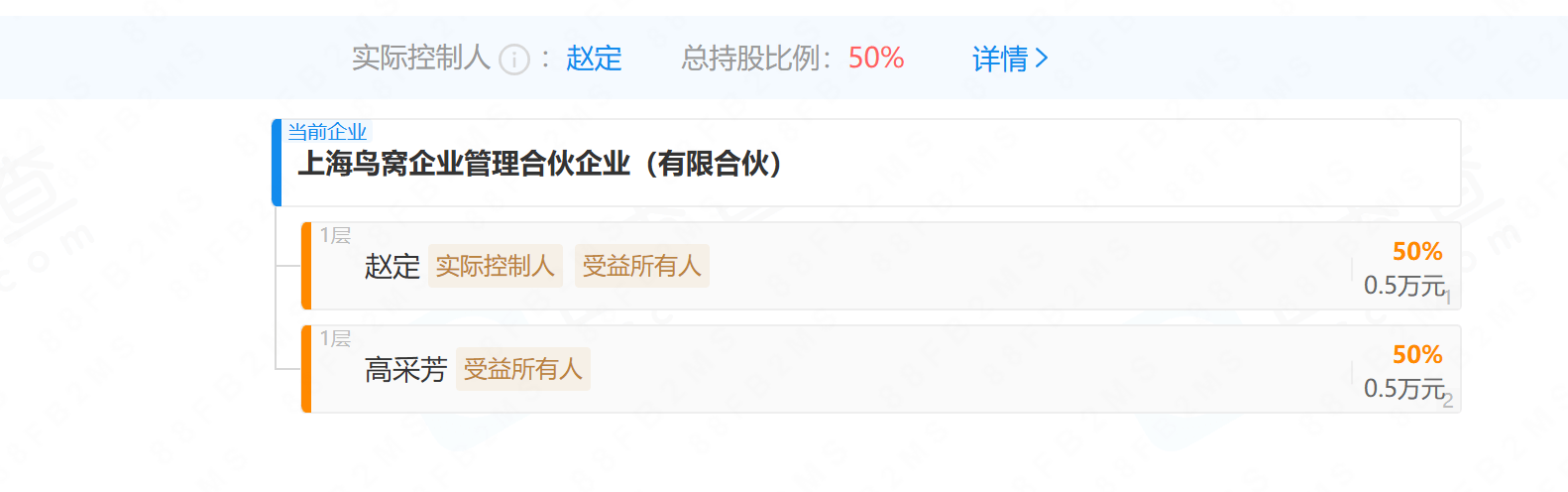 最早进入的黑蚁资本,同时也是零食连锁品牌鸣鸣很忙的投资方。B轮入局的“上海鸟窝”,背后则是赵一鸣零食创始人赵定。在B+轮融资后,黑蚁共计控股6.06%,上海鸟窝控股0.74%。