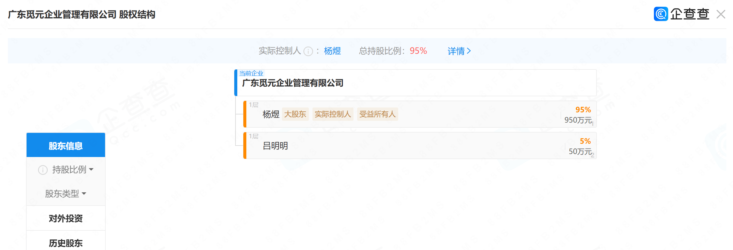 而觅元,由袁记食品创始人袁亮宏的妻子杨煜持有95%股份,她是该公司的实际控制人与收益所有人。