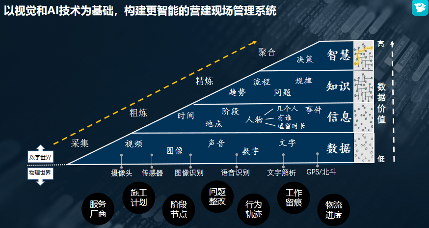 他举了个例子,AI将施工现场的图像、视频筛选后,自动将现场“脏乱差”等相关问题反馈给品牌方及承建商的工程管理人员,敦促承建商进行整改并可在线上完成问题管理闭环;而与“人员”、“安全”和“进度”相关的数据则会同步到品牌方的内部系统中,为品牌方进行管理决策提供“真实”“实时”的数据支持;在小散工程的“家装”场景中,AI也可自动将施工现场“洁净美”的视频、剪影,图片给到家装公司的前端,他们直接可以拿这些内容去做营销推广。