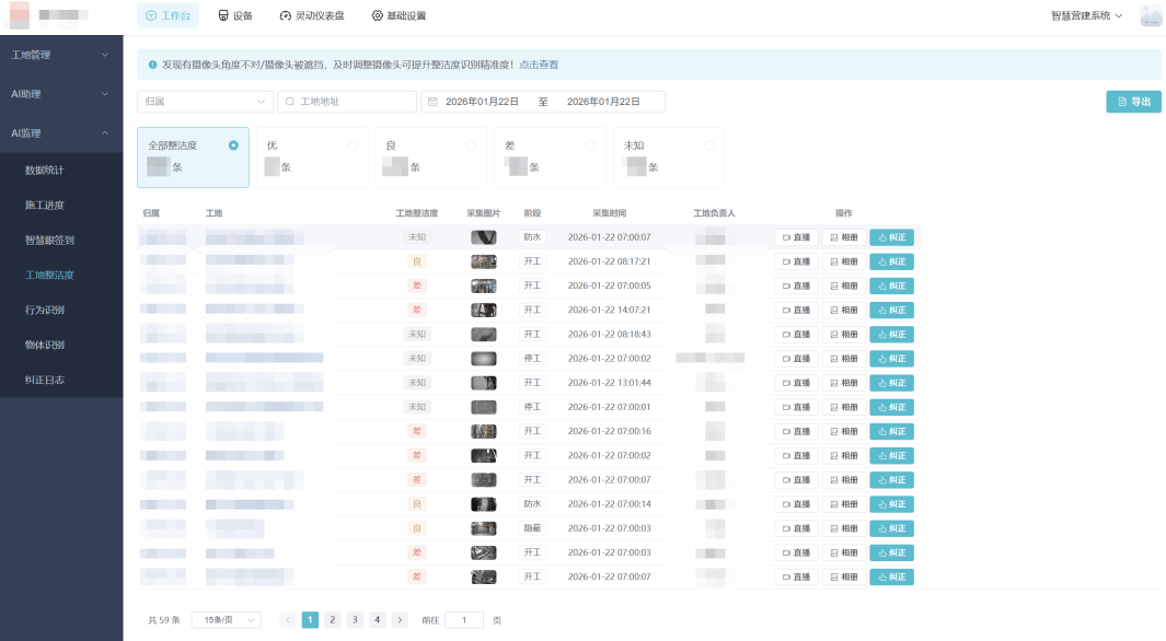 三是安全预警实时化。AI能够7×24小时自动识别未佩戴安全帽、穿拖鞋施工、违规动火作业、现场吸烟、用电不规范等危险行为,并即时推送告警至相关负责人。“相当于放了一个哨兵在那里,他会自己看,自己判断,自己预警。”喻坤说。