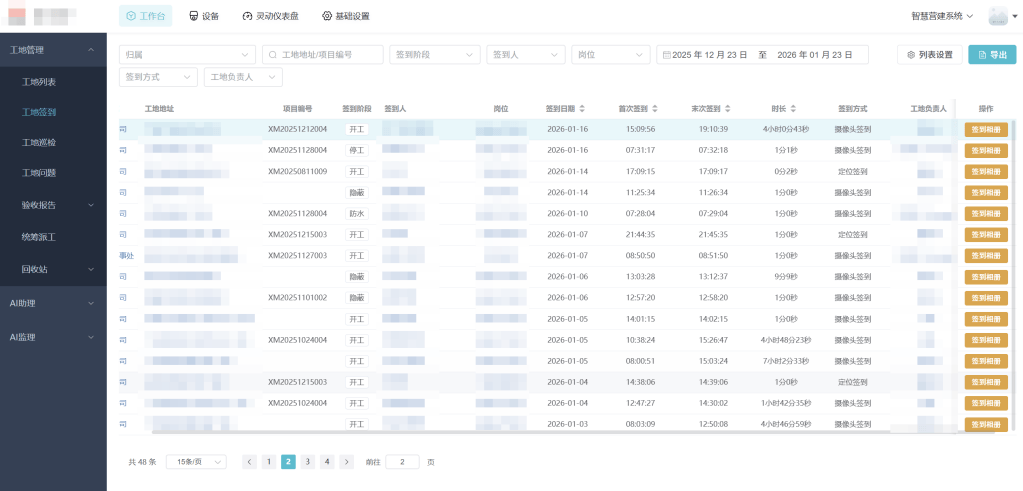 二是财务控制精细化。通过AI人脸识别与行为分析,系统可核实施工现场实际人数、工种,工时,为品牌方核算营建成本、审核分包报价提供全面客观的数据支撑。实践案例显示,这能帮助品牌方将相关营建人工成本降低约15%。