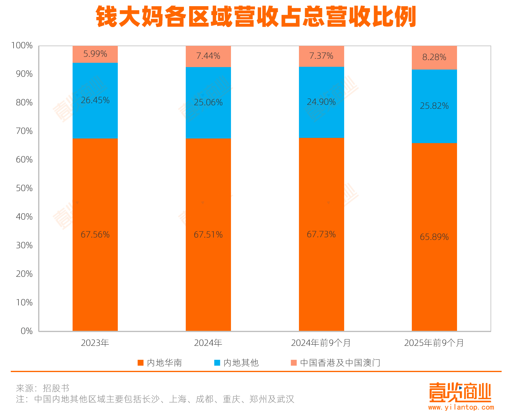 其早期全国化扩张已告失败,2022年全线撤退北京,随后多地门店也进入关店倒计时。与2023年相比,2025年三季度其华南大本营门店净减少3家,内地其他市场的净增量仅为14家,反而港澳地区贡献了11家的净增长,进一步印证其模式难以在华南以外区域复制。