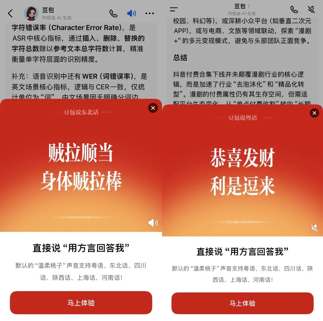 无论元宝、千问之间的红包大战如何火热,对于豆包的影响可能始终有限。因为,无论是豆包的拟人化属性,语音、视频聊天体验,还是对于各地方言的支持,都是目前的元宝、千问所难以企及的。