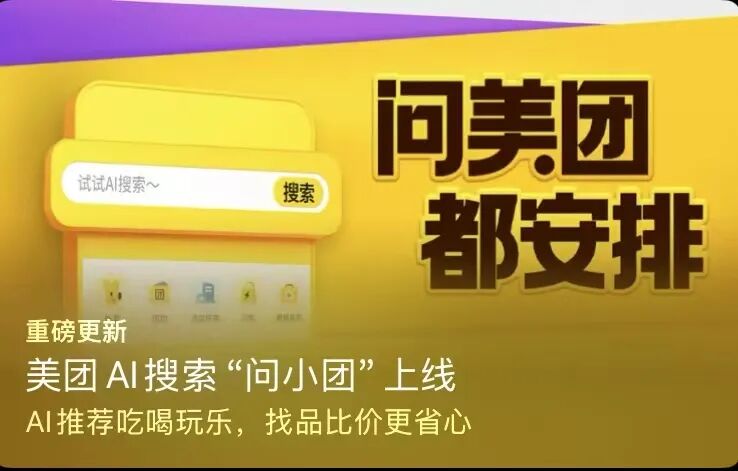 直到今年1月15号,千问App宣布全面接入淘宝、支付宝、飞猪、高德等阿里生态业务,开启“AI办事时代”。美团才真正感受到了迫在眉睫的威胁,于一周后紧急上线“问小团”AI搜索功能,涵盖从外卖、到店餐饮、酒旅到休闲娱乐的全场景。
