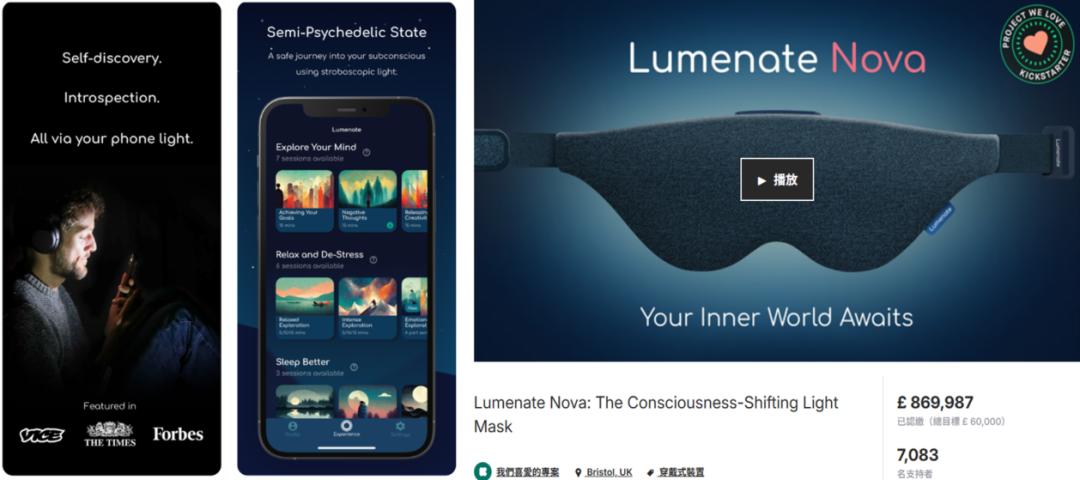 而当 App 的体验瓶颈(手持不便、光路不稳定)暴露,Lumenate 并迅速推出了配套眼罩来解决这些痛点。