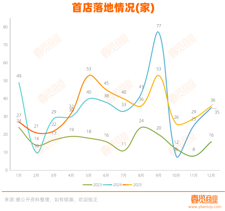 据壹览商业不完全统计,2025年,全国36个城市至少开出420家首店,同比增长7.19%。