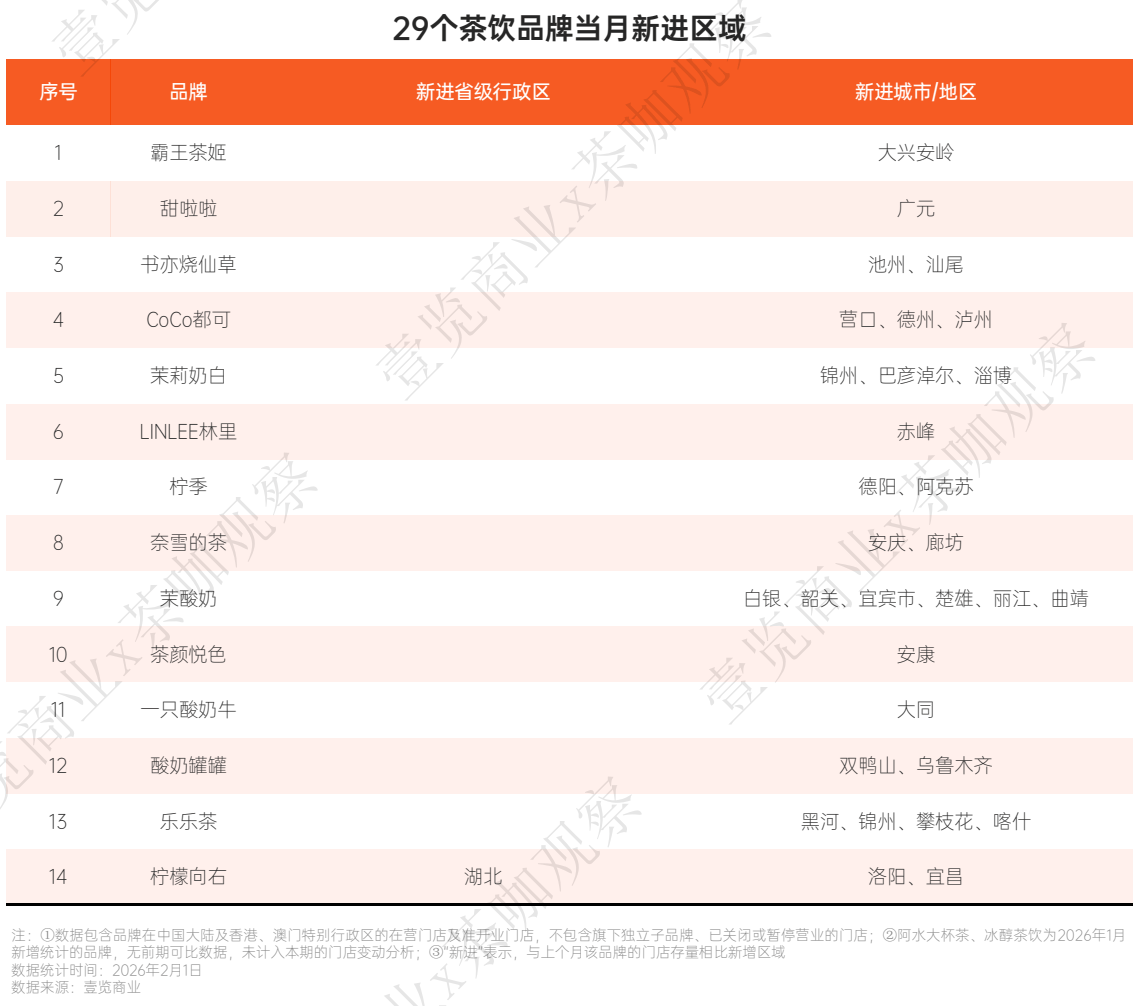 本期报告基于国内31家头部现制茶饮品牌的经营一手数据,通过详实分析,从六大核心模块为您复盘2026年1月的市场全景。