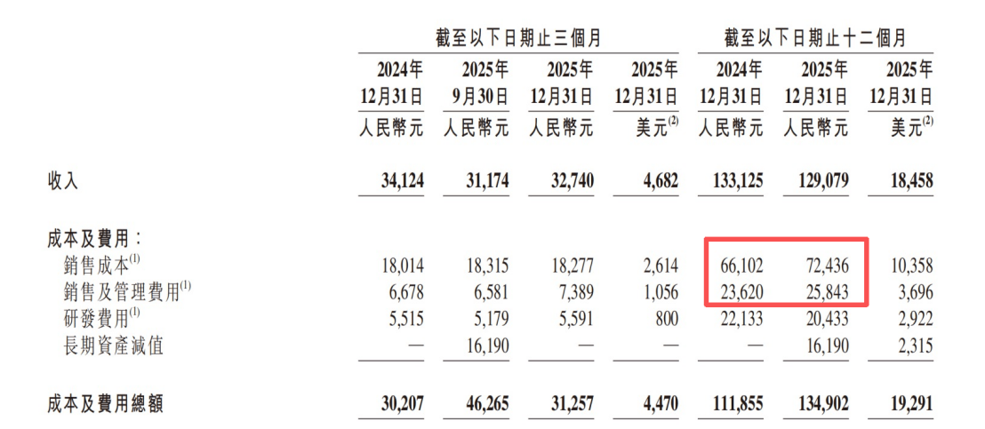 营收下滑的同时,百度的销售成本却在上升。2025年,百度集团销售成本从661亿元上升至724亿元,增长约9.6%;销售及管理费用从236亿元上升至258亿元,增长约9.4%。