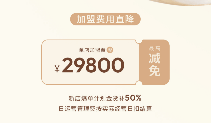 此前,爷爷不泡茶的品牌加盟费、设备费、培训费等费用合计约30万元。在此基础上,爷爷不泡茶给出了第一层优惠:单店加盟费直降,最高减免2.98万元,无附加条件。降低了初始现金流压力,让更多创业者有机会迈出第一步。