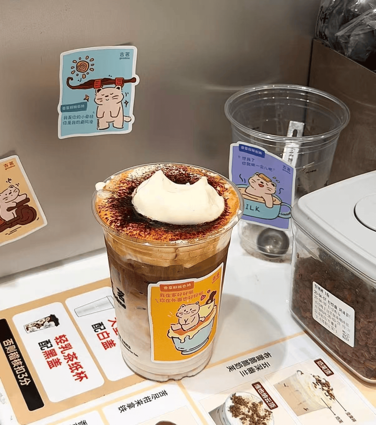 在工艺端,古茗拿出了堪称“笨功夫”的执行标准。茶咖观察了解到,这款奶盖的打发次数超过1000次,打发时间比传统奶盖提升2倍以上。纯动物奶油天然娇贵,打发过度容易消泡,打发不足则无法形成挺立形态,对工艺精度的要求极高。更难得的是,古茗对全国门店上万台奶盖机进行逐台校准,确保每一台机器的转速、时间、温度都达到统一标准。正是这种近乎执拗的品控动作,将动物奶油的“不稳定性”转化为“万店如一”的稳定出品。