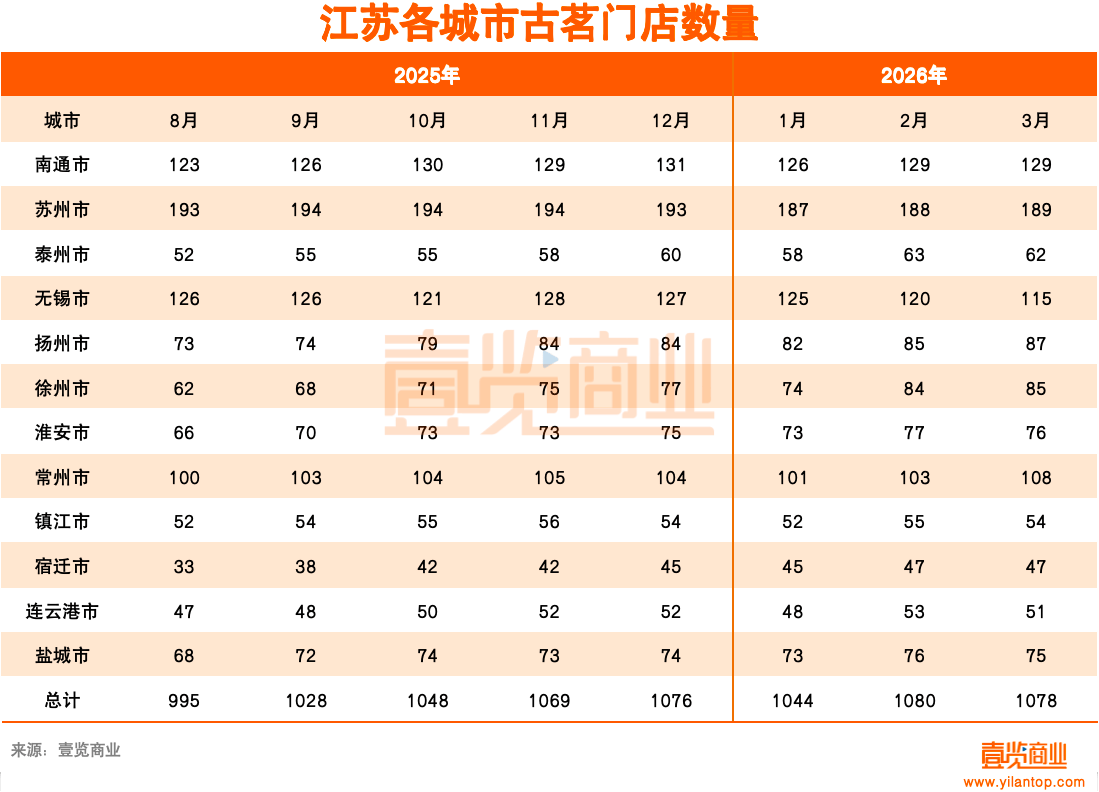 作为一个典型采用“农村包围城市”扩张策略的品牌,古茗的高密度布局依赖供应链半径和加盟商体系的成熟度。此前,古茗已在南京都市圈外围的句容、芜湖等多个城市布局门店。目前,古茗已在江苏区域拥有超过1000家门店。