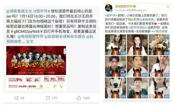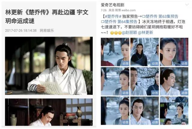 《楚乔传》播出期间,其在社交平台上的热度居高不下。可以说其搭建了充足及完备的自媒体矩阵及推广渠道矩阵,形成了全方位的传播攻势。