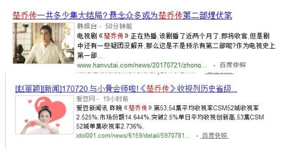 《楚乔传》作为当下的爆款ip剧制,本身自带热点。不管是媒体从本身特性出发结合剧集亮点实时报道,还是纯粹蹭热度借势营销,各大媒体的集体狂欢无疑为楚乔传的火爆再添助力。因而,你会看到如37游戏等游戏媒体报道楚乔传同名手游;和讯网等财经类媒体解读剧情人物;中国江苏网、华龙网等地方媒体卖力宣传;猫扑、百度贴吧、知乎、豆瓣等贴吧社区井喷式讨论;你也能看到比经网、慧聪网、等科技类媒体走下神坛;你更能看到爱豆网、21cn娱乐、中华网娱乐频道、等娱乐媒体疯狂报道。