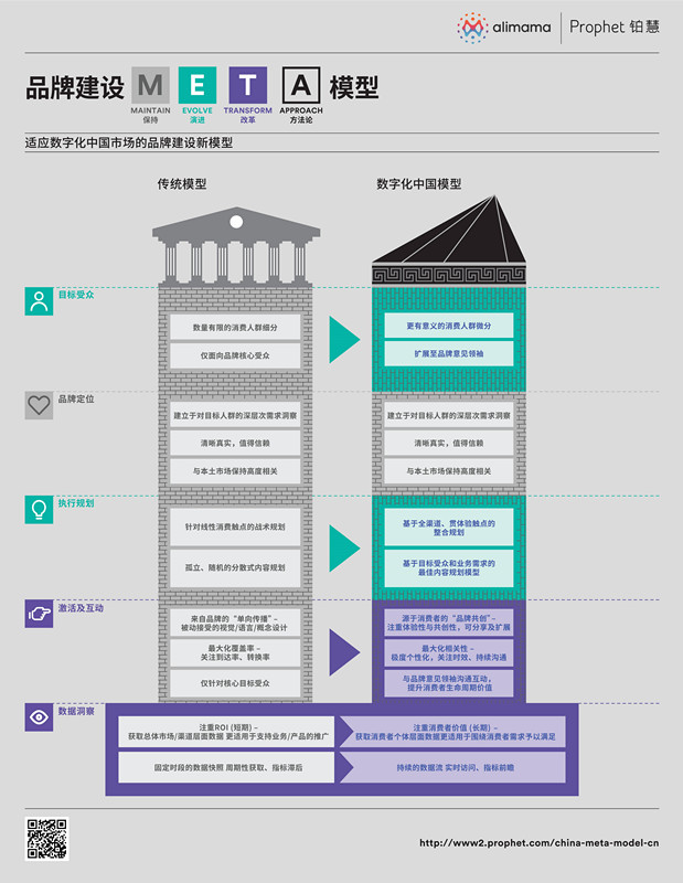 中国品牌建设META模型的创立,得益于Prophet铂慧对于品牌建设探索经验,以及阿里妈妈在大数据和营销实践上的积累,进行了大量的调研和访谈研究,同时邀请了多个行业中,国内外领导品牌的商业领袖,从他们在数字中国时代成功建立品牌的过程当中汲取相关见解、经验及教训。未来,会就META品牌建设模型推出联合白皮书,也希望更多品牌加入到共创当中,对于这场已经到来的变革,不仅仅是见证者,而是参与者和推动者。