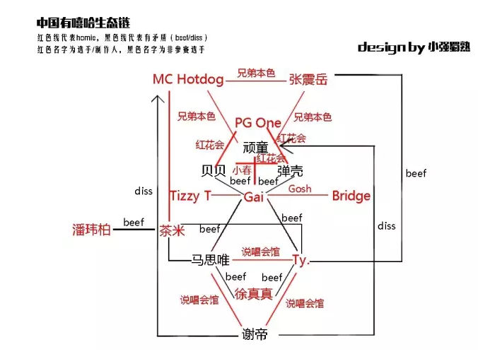 嘻哈语境:一图看懂《中国有嘻哈》生态链,谁是谁的homie,谁和谁有beef。