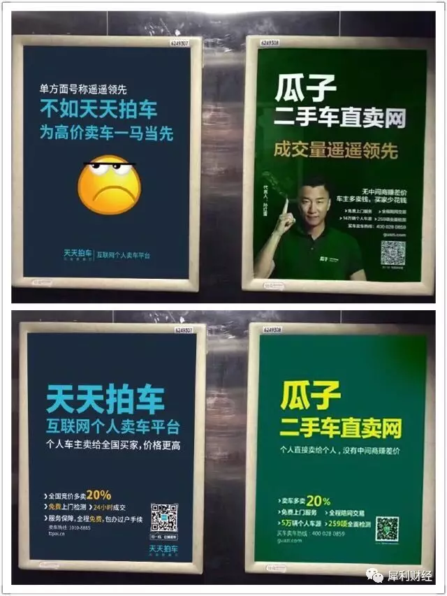 包下瓜子二手车旁边广告位,微博上diss瓜子的代言人,天天拍车和瓜子二手车的beef可谓是今年二手车市场的一大看点了。