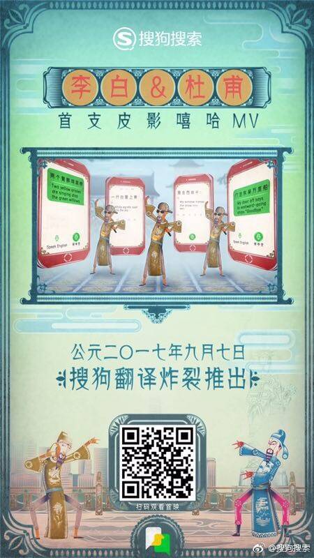 原来,这是搜狗翻译做的一个H5广告——《唐朝有嘻哈》。一开始,就是唐朝最强诗人——李白和杜甫之间的诗词PK,画风很正呀。不过,随着歪果仁的一句“有freestyle吗”,画风突变,“唐朝有诗词”大赛瞬间变成“唐朝有嘻哈”大赛,这是要搞事情啊。