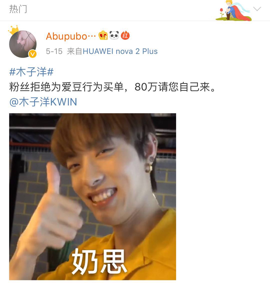 她们嘴上说拒绝为偶像行为买单,让木子洋自己轮博。