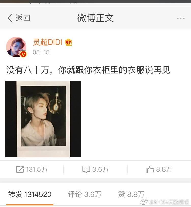 在坤音的日常小视频中,木子洋为灵超拍了一张照片,然后两人打赌,灵超在微博发这张照片,转发一定能破80万。