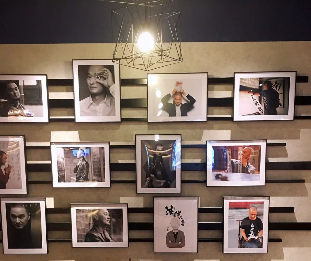 长桌的尽头是冯唐的照片墙,自侃的“油腻老祖”画像格外显眼,不禁让人想起他去年戳人的《如何避免成为一个中年油腻男》;