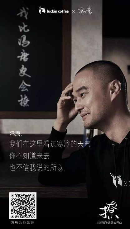 冯唐个人流量×瑞幸咖啡线上线下品牌流量,生成巨大的流量池,将有文艺心的大众网罗其中。