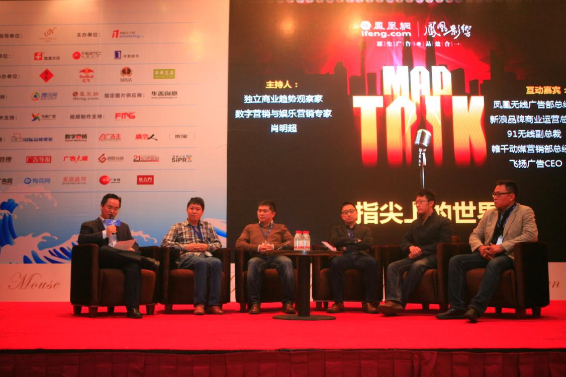 此外,论坛专门设置的“凤凰‘疯狂龙舌兰’专场——指尖上的世界”和“腾讯‘智慧营销研究院’专场——跟上移动营销Style”两场圆桌互动,更是干货十足,引爆全场。凤凰疯狂龙舌兰专场圆桌互动,主要围绕移动产品的应用与推广,探讨当下移动应用产品的竞争格局,移动APP应用在产品创新和推广中的关键要素,以及未来移动应用产品的新玩法。独立商业趋势观察家,数字营销与娱乐营销专家肖明超、凤凰网凤凰无线广告部总经理赵睿、新浪品牌商业运营总经理戴杰、91无线副总裁邹建峰、帷千动媒营销部总经理林志坚、飞扬广告CEO 薛永飞参与对话,并发表了各自不同的看法。