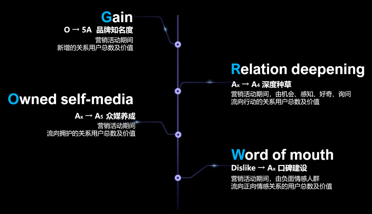 从拓展机会用户,到通过营销活动将机会用户沉淀为品牌用户,再到不同阶段的用户收割,以及价值评估指导再营销,“O—5A—GROW”模型为品牌打造了真正的营销闭环。