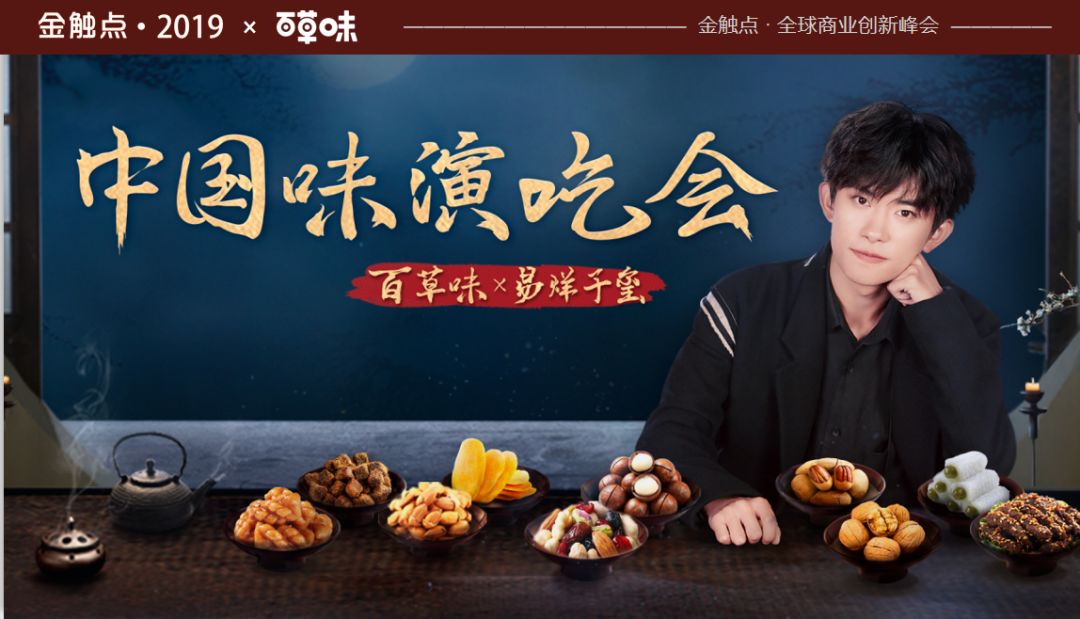 基于以上百草味提出了百草味中国味,围绕这个主题我们做了很多事情,虽然很多事情大家可能都没有看到,我们签了TFboys的代言,到517吃货节,以及颐和园国潮礼盒,还有双十一做的中国味零食秀,演吃会,我今天重点介绍一下演吃会。