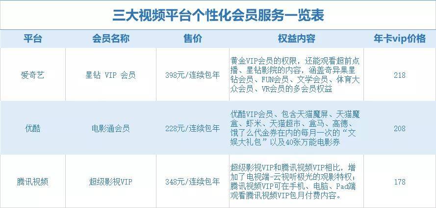 自2015年超级网剧《盗墓笔记》为爱奇艺吸纳500万付费会员后,国内视频平台也在加码布局差异化服务体系。在超前点播后,今年年初,爱优腾纷纷进行会员升级,推出个性化会员服务,满足不同用户的需求。爱奇艺上线“星钻VIP会员”,腾讯视频上线“超级影视VIP”,优酷则推出了“电影通会员”,价格和权益上也与基础会员有所不同。
