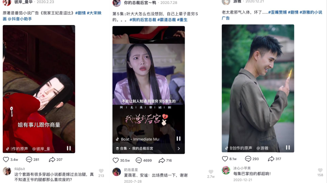 现在打开抖音、快手刷视频,时不时能刷到借贷类、教育类、游戏类的广告,剧情三俗、土味、狗血雷人,逃不出一夜暴富、手撕绿茶、后宫争宠、坏人遭报应的套路,你表示不能理解,如同不少网民在评论区的留言,“抖音、快手怎么不去拍电视剧”,但数据骗不了人,这类型广告的观看量和点赞数几乎都是以万次计。