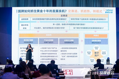 易观联合创始人、总裁、COO刘怡则从研究视角出发,对中国品牌如何在新的消费背景下抓住黄金发展期提出相关建议。她认为,新锐品牌即使是诞生于规模一般的消费副中心,最终也要占领主流消费中心,才能成为基业长青的世界级品牌。