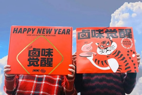 谁家的饭里没个卤味,卤味觉醒直接推出虎年限定礼盒,热销产品一次尝个遍,慢烤小肉干、金汤鹌鹑蛋、鲜辣海带结,这配置作为过年宅家的零食消遣简直过瘾。大红色礼盒包装加上金色菱形框,年味十足,串门送礼也绝对拿得出手。