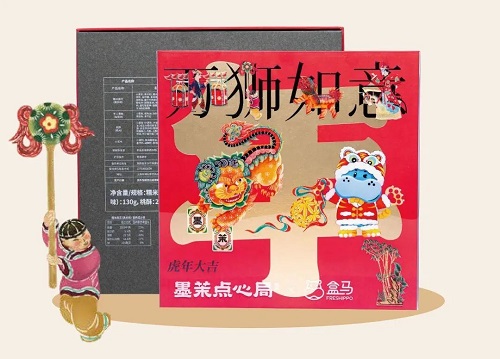 “过大年,看大戏,新年万事都如意。”墨茉点心局×盒马鲜生推出“万狮如意”新年礼盒,礼盒的外包装上和内部设计了皮影戏的小部件,需要手工组装、搭建后才能做成一个完整的皮影戏舞台,让你重温童年耍皮影的乐趣。