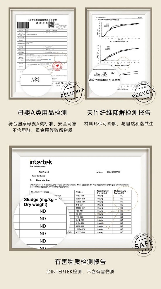 另外,我们有自己的产品设计和开发团队,专注于新兴材料的研究与开发,团队都来自于行业里TOP的家纺家居品牌。我们联合行业头部的原料工厂,围绕着整个市场上的天然材质,提出各种创新的材料混纺方案,不停地做优化测试,让面料能够更好地迎合宝宝穿着的舒适体感。