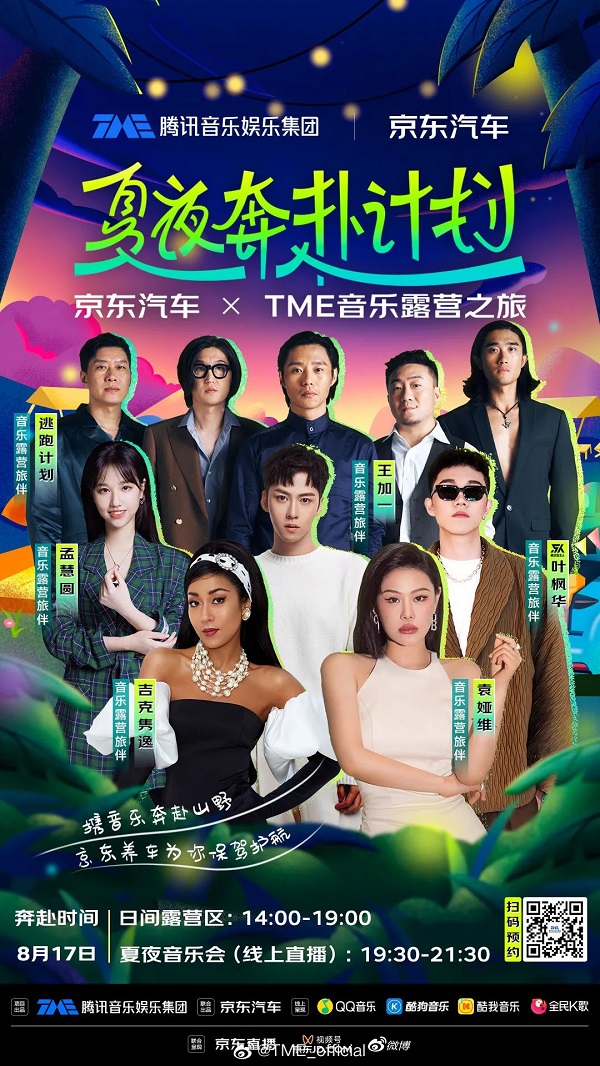 在特殊时期常态化之下,京东汽车联合腾讯TME音乐发起了“夏夜奔赴计划”音乐露营之旅,邀请吉克隽逸、袁娅维、逃跑计划等音乐人助阵,为用户唱响别样的夏日时光。
