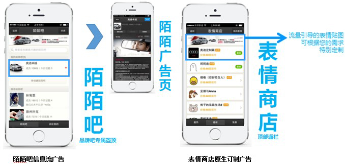 根据陌陌的基于陌陌吧产生的类豆瓣小组形态的,以兴趣为核心的群组产品陌陌吧,信息流广告产品显然更为适合;而表情贴图这种广告形态,则是完全的原生形态的广告。