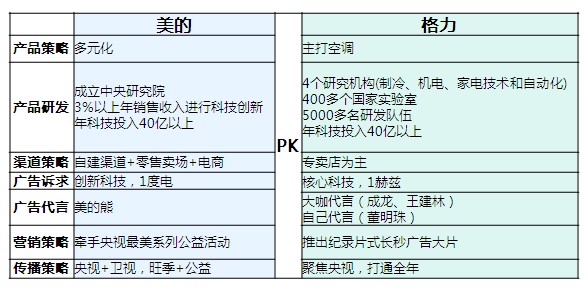 空调双雄格力与美的聚焦央视,市场份额数一数二,均属于“千亿俱乐部”成员。两大巨头线上高举高打,线下攻城略地,格力“1赫兹”与美的“1度电”的广告深入人心。