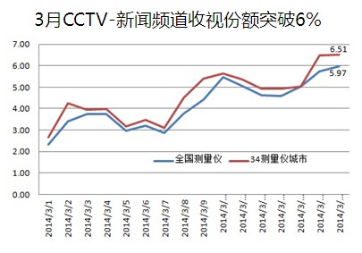 电视是大事件的权威发布平台。大事发生时,大众自发聚焦大公共传播平台,形成空前的价值认同。当社交媒体舆论场里的信息纷繁复杂时,中央级媒体的公信力和权威性就成为击破谣言的利器。重大事件最需权威声音,克里米亚事件、马航失联、两会等重大新闻,CCTV-1、4、新闻频道单日34中心城市收视份额合计突破16%。